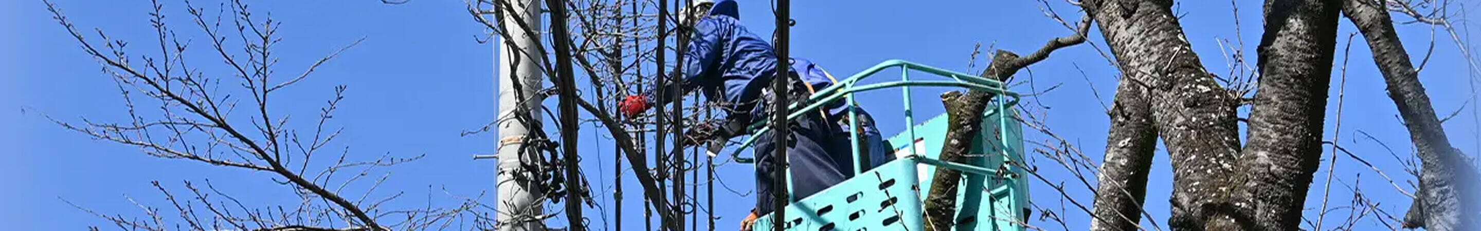 電線にかかりそうな枝を除き、空師が上から切り分け作業完了いたしました。